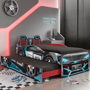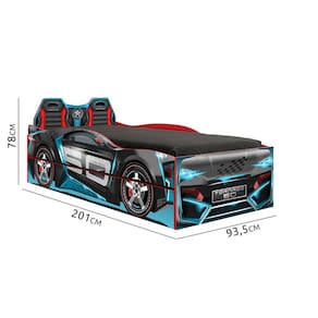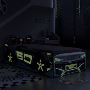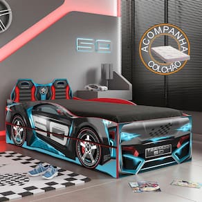 Bicama Infantil Carro Tornado Fun Preto Azul Pura Magia + Colchão Ortobom