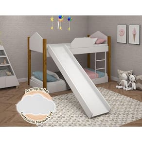 Bicama Infantil Com Escorregador Juvenil Luiza Branco E Amêndoa Luminária Led - Cor: Branco