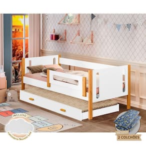 Bicama Infantil Com Grade De Proteção E Colchões Mirela Branca/Mel + Luminária LedA cama infantil Mirela possui elegância e modernidade sem perder o conforto. Ainda oferece uma maior autonomia para o pequeno descer e explorar todo o cômodo, o que deixa o espaço não só mais divertido como também perfeito para estimular o desenvolvimento sensorial. Acompanha também cama auxiliar para acomodar visitas.Tipo: Cama SolteiroModelo: MirelaCor: Branca/MelGarantia: 90 diasProduto DesmontadoCama Auxiliar possui rodízios (rodinhas)Acompanha manual e kit de montagemCom Grade de Proteção dos dois ladosAcompanha 2 colchões Solteiro Infantil (Altura: 12cm x Largura: 88cm x Comprimento: 188cm)Acompanha 1 Luminária Led NuvemMedidas CamaAltura: 65cmLargura: 95cmComprimento: 195cmMedidas Cama AuxiliarAltura: 20cmLargura: 91,5cmComprimento: 189cmATENÇÃOIMAGENS MERAMENTE ILUSTRATIVAS REALIZADO EDIÇÃO, PODENDO HAVER UMA PEQUENA VARIAÇÃO DE COR DEPENDENDO DE CADA TELA OU MONITOR.