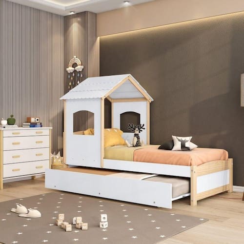 1x Telhado para Cama Infantil Casinha Branco/Natural Largura: 108,5 cm Altura: 117,3 cm Peso: 22,5 kg Profundidade: 76,2 cm Necessita Montagem: Sim