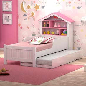 Bicama Infantil Solteiro Menina Casinha Branco Rosa