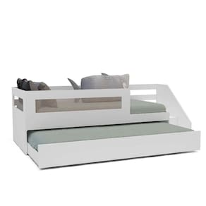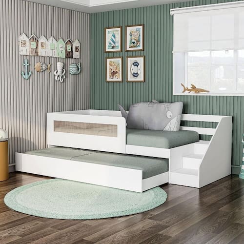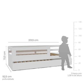 Bicama Infantil Space Solteiro com Rattan, Grade de Proteção e Escada de Fácil Acesso Casatema Branco. A Bicama Infantil Space é ideal para otimizar o espaço do quarto infantil, proporcionando conforto e funcionalidade. Com estrutura em MDP, detalhes em Rattan e uma escada de fácil acesso, esta bicama é perfeita para garantir a segurança e autonomia da criança. A segunda cama deslizante é prática e eficiente, ideal para receber visitas. A grade de proteção adiciona segurança durante o sono, enquanto o design moderno e elegante se integra perfeitamente em ambientes infantis. O tamanho padrão do colchão é 88 x 188 cm de solteiro.