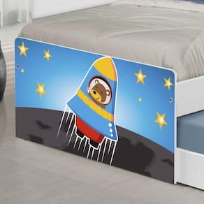 A Bicama Juvenil Barcelona Adesivada Astronauta é belíssima e conta com um design funcional, que ocupa pouco espaço no ambiente. A Coleção Astronauta foi desenvolvida por s designers oferecendo um visual exclusivo, descontraído e divertido ao ambiente. A cama auxiliar fica embaixo da principal e basta puxá-la por meio das corrediças para começar a fazer dela. É ideal para quartos pequenos e para caso precise de uma cama extra para receber um amigo, ou divida o dormitório com alguém. Feita em MDF e MDP e seu acabamento é feito com pintura UV brilhante tornando-a um produto resistente e com aspecto de novo por muito mais tempo. É uma excelente escolha para acomodar colchões de solteiro na medida de 188 cm x 88 cm de largura.