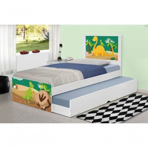Bicama Juvenil Adesivada Dinossauro Com Colchões Bicama Juvenil Barcelona Adesivada Dinossauro com 2 Colchões - Branco Ref. 1440