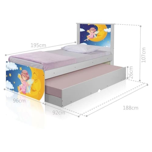 A Bicama Bibox Juvenil Barcelona Adesivada Fadinha Encantada é belíssima e conta com um design funcional, que ocupa pouco espaço no ambiente.