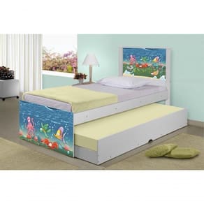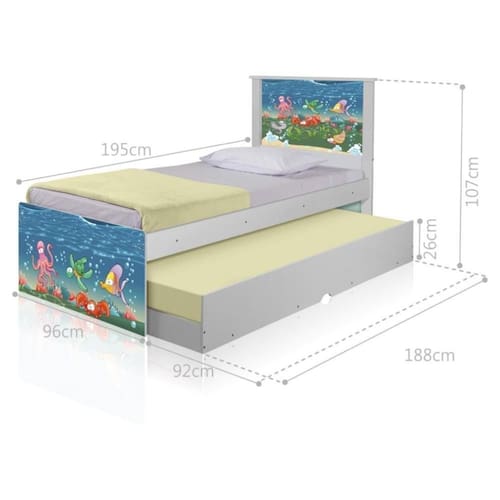 A Bicama Bibox Juvenil Barcelona Adesivada Fundo do Mar é belíssima e conta com um design funcional, que ocupa pouco espaço no ambiente.
