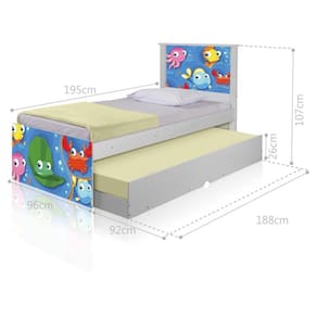 A Bicama Bibox Juvenil Barcelona Adesivada Fundo do Mar Peixinhos é belíssima e conta com um design funcional, que ocupa pouco espaço no ambiente.