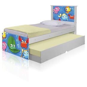 Bicama Bibox Juvenil Barcelona Adesivada Fundo do Mar Peixinhos - Branco