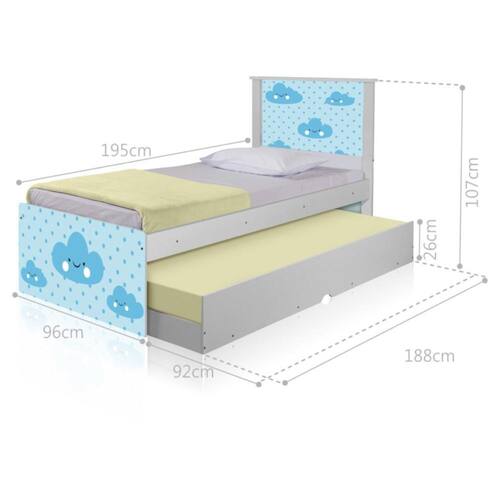 A Bicama Bibox Juvenil Barcelona Adesivada Nuvem Menino é belíssima e conta com um design funcional, que ocupa pouco espaço no ambiente.