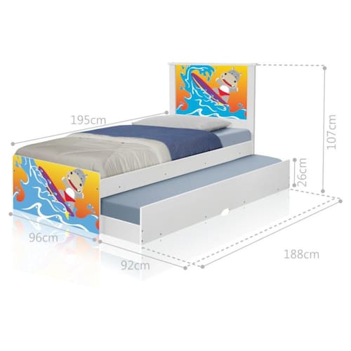 A Bicama Bibox Juvenil Barcelona Adesivada Surfista é belíssima e conta com um design funcional, que ocupa pouco espaço no ambiente.