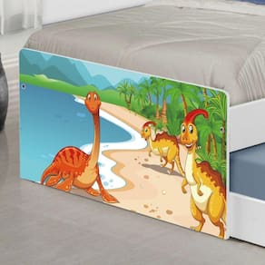 A Bicama Juvenil Barcelona Adesivada Terra dos Dinossauros é belíssima e conta com um design funcional, que ocupa pouco espaço no ambiente. A Coleção Terra dos Dinossauros foi desenvolvida por nossos designers oferecendo um visual exclusivo, descontraído e divertido ao ambiente. A cama auxiliar fica embaixo da principal e basta puxá-la por meio das corrediças para começar a fazer uso dela. É ideal para quartos pequenos e para caso precise de uma cama extra para receber um amigo, ou divida o dormitório com alguém. Feita em MDF e MDP e seu acabamento é feito com pintura UV brilhante tornando-a um produto resistente e com aspecto de por muito mais tempo. É uma excelente escolha para acomodar colchões de solteiro na medida de 188 cm x 88 cm de largura.