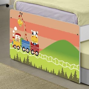 A Bicama Juvenil Barcelona Adesivada Trenzinho é belíssima e conta com um design funcional, que ocupa pouco espaço no ambiente. A Coleção Trenzinho foi desenvolvida por nossos designers oferecendo um visual exclusivo, descontraído e divertido ao ambiente. A cama auxiliar fica embaixo da principal e basta puxá-la por meio das corrediças para começar a fazer dela. É ideal para quartos pequenos e para caso precise de uma cama extra para receber um amigo, ou divida o dormitório com alguém. Feita em MDF e MDP e seu acabamento é feito com pintura UV brilhante tornando-a um produto resistente e com aspecto de novo por muito mais tempo. É uma excelente escolha para acomodar colchões de solteiro na medida de 188 cm x 88 cm de largura.