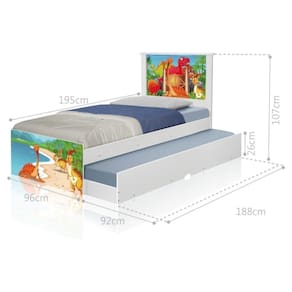 MODELO: Bicama Juvenil Adesivada Terra dos Dinossauros | MATERIAL PRINCIPAL: MDF/MDP | PRODUTO PRECISA DE MONTAGEM?: Sim, a montagem é simples mas sugerimos a contratação do nosso de montagem (para os CEPs em que o está disponível) ou de algum experiente de sua preferência | ESTADO DE ORIGEM: SP | PESO DO PRODUTO (KG): 36,7 | COR PREDOMINANTE: Branco | DESCRIÇÃO DO TAMANHO: Altura: 107 cm Largura: 96 cm Comprimento: 195 cm | COMPRIMENTO DO PRODUTO (CM): 195 | CORES DO PRODUTO (FILTRO DE CORES): Branco | CONTEÚDO DA EMBALAGEM: 1 Bicama | LARGURA DO PRODUTO (CM): 96 | INSTRUÇÕES/CUIDADOS: Limpar com pano macio e seco, não utilizar produtos abrasivos. | ALTURA DO PRODUTO (CM): 107 | MATERIAL PARA FILTRO: MDF/MDP | ALTURA DO PRODUTO COM EMBALAGEM (CM): 25 | LARGURA PRODUTO COM EMBALAGEM (CM): 52 | COMPRIMENTO PRODUTO COM EMBALAGEM (CM): 195 | PESO PRODUTO COM EMBALAGEM (KG): 37,5