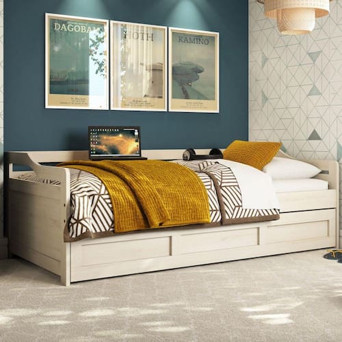 +Madeira+maci%E7a+de+Pinus.+Cama+auxiliar+possu%ED+sistema+de+rod%EDzio+fixo%2C+estrados+em+madeira+de+pinus+largura+20mm.+Pintura%3A+PU+verniz+-+Estrutura%3A+Madeira+Maci%E7a.+Fundo+compessado+4mm.+Ideal+para+o+seu+lar. Acabamento: Pintura Acabamento dos Pés: Pintura Acompanha Cama Auxiliar: Sim Acompanha Colchão: Não Acompanha Dossel: Não Acompanha Móbile: Não Acompanha Suporte para Mosquiteiro: Não Altura: 65 cm Altura do Estrado até o Chão: 47 cm Altura dos Pés: 0 cm calculo: unidade Cama Auxiliar Acompanha Colchão: Não Cama Auxiliar com Rodízio: Sim Cama Auxiliar Suporta Até (kg): 80 kg Complexidade da Montagem: Baixa: pode ser montado por uma pessoa sozinha Cr: Branco Lavado Cr do Produto: Branco Lavado Cr Flex: Não somente montagem com a mesma Cr. Escala de Brilho: Fosco Estilo: Clássico Extensível: Sim Gaveta com Chave: Não Itens Inclusos: 1 Bicama e Manual de Montagem Largura: 194 cm Largura Máxima: 176 cm Largura Mínima: 88 cm Manual de Montagem e Instalação: https://cdn2.madeiramadeira.com.br/atributo/moveis-saraiva/576011-it-bicama-londrina.pdf Material do Estrado: Pinus Material dos Pés: Madeira Maciça Material Principal: Madeira Maciça Montagem Flex: Não - somente uma forma de montagem. Necessita Montagem: Sim Origem do Produto: Nacional Permite a Utilização de Cama Auxiliar: Sim Peso: 35 kg Possui Baú: Não Possui Gavetas: Não Possui Pés: 04 Possui Portas: Não Possui Prateleiras: Não Possui Rodízio: Sim Profundidade: 96 cm Recomendações de Uso, Manutenção e Limpeza: Limpeza com pano umedecido, não aplicar lustra móveis. Rodízio com Trava: Não Sapatas Niveladoras: Não Sistema de Montagem: Kit ferragens ( contém acessórios como: cavilhas, roldanas, parafusos ) Suporta Até (kg): 80 kg Tamanho: Tamanho do Colchão Indicado (L x C): 88cm x 188cm Cama auxiliar altura de no máximo 14cm Tamanho do Colchão Indicado Cama Auxiliar: 88cm x 188cm x 140cm Tipo de Cama: Bicama Tipo de Colchão: Solteiro Tipo de Estrado: Removível Tipo de Madeira Maciça: Pinus Tipo de Madeira Maciça dos Pés: Pinus