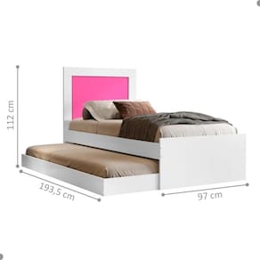 ALTURA DO PRODUTO COM EMBALAGEM (CM): 23 | MATERIAL PRINCIPAL: MDF | COR PREDOMINANTE: Branco | LARGURA PRODUTO COM EMBALAGEM (CM): 71 | CONTEÚDO DA EMBALAGEM: 1 Bicama | COMPRIMENTO DO PRODUTO (CM): 193 | COMPRIMENTO PRODUTO COM EMBALAGEM (CM): 191 | PESO PRODUTO COM EMBALAGEM (KG): 60,2 | MODELO: Bicama Luara Solteiro Branca e Rosa | CORES DO PRODUTO (FILTRO DE CORES): Branco | DESCRIÇÃO DO TAMANHO: Altura: 112 cm Largura: 97 cm Comprimento: 193,5 cm | MATERIAL PARA FILTRO: MDF | ESTADO DE ORIGEM: SP | INSTRUÇÕES/CUIDADOS: Limpar com pano macio e seco, não utilizar produtos abrasivos. | PRODUTO PRECISA DE MONTAGEM?: Sim, a montagem é simples mas sugerimos a contratação do nosso de montagem (para os CEPs em que o está disponível) ou de algum experiente de sua preferência | ALTURA DO PRODUTO (CM): 112 | LARGURA DO PRODUTO (CM): 97 | PESO DO PRODUTO (KG): 59,4