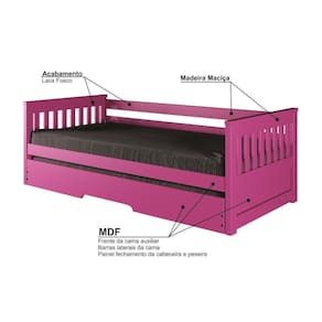 Bicama Mission em Madeira Maciça/MDF Rosa. A Bicama Mission é impecável no acabamento, toda em laca e em madeira maciça com partes em MDF! Uma única peça pode ser usada como um confortável sofá e ainda como 2 camas solteiro. A Bicama Mission suporta até 90Kg cada cama, possui rodízios na cama auxiliar e acompanha um detalhado manual de montagem. - Medida Interna Cama Superior - 1910 x 900mm - Medida Interna Cama Inferior - 1870 x 900mm Um excelente custo-benefício com a vantagem de ser uma peça compacta e decorativa. Recomendações de Uso, Manutenção e Limpeza: Não armazenar ou utilizar o produto em locais com excesso de umidade. Para limpeza, não utilizar produtos químicos e abrasivos, usar apenas com pano umedecido, para garantir a maior durabilidade do móvel. Seguir rigorosamente as instruções de uso contidas no Manual de Montagem. Marca: Arbol Móveis Ean: 7909903408766