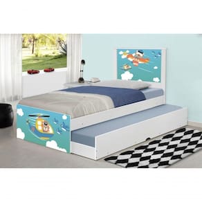 A Bicama Juvenil Barcelona Adesivada Patrulha Animal é belíssima e conta com um design funcional, que ocupa pouco espaço no ambiente. A Coleção Patrulha Animal foi desenvolvida por nossos designers oferecendo um visual exclusivo, descontraído e divertido ao ambiente. A cama auxiliar fica embaixo da principal e basta puxá-la por meio das corrediças para começar a fazer dela. É ideal para quartos pequenos e para caso precise de uma cama extra para receber um amigo, ou divida o dormitório com alguém. Feita em MDF e MDP e seu acabamento é feito com pintura UV brilhante tornando-a um produto resistente e com aspecto de novo por muito mais tempo. É uma excelente escolha para acomodar colchões de solteiro na medida de 188 cm x 88 cm de largura.