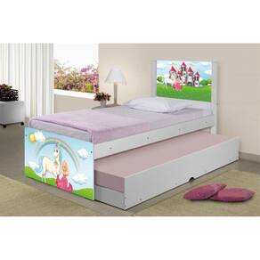 Bicama Bibox Juvenil Barcelona Adesivada Princesa Encantada com 2 Colchões - Branco