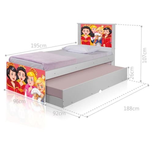 A Bicama Bibox Juvenil Barcelona Adesivada Princesas Medievais é belíssima e conta com um design funcional, que ocupa pouco espaço no ambiente.