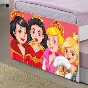 A Bicama Juvenil Barcelona Adesivada Princesas Medievais é belíssima e conta com um design funcional, que ocupa pouco espaço no ambiente. A Coleção Princesas Medievais foi desenvolvida por nossos designers oferecendo um visual exclusivo, descontraído e divertido ao ambiente. A cama auxiliar fica embaixo da principal e basta puxá-la por meio das corrediças para começar a fazer dela. É ideal para quartos pequenos e para caso precise de uma cama extra para receber um amigo, ou divida o dormitório com alguém. Feita em MDF e MDP e seu acabamento é feito com pintura UV brilhante tornando-a um produto resistente e com aspecto de novo por muito mais tempo. É uma excelente escolha para acomodar colchões de solteiro na medida de 188 cm x 88 cm de largura.