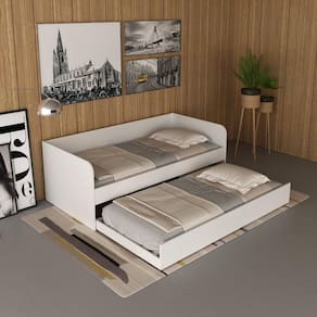 Estrutura em MDP de 15mm com acabamento em pintura UV Cama auxiliar com 4 rodízios para fácil movimentação Suporta até 130kg ideal para uso diário e visitas Quando aberto, atinge até 188,2cm de comprimento , entregue desmontado com Indicado para colchão solteiro: 90,5x18x190cm Produção 100% ecológica mais resistência e sustentabilidade