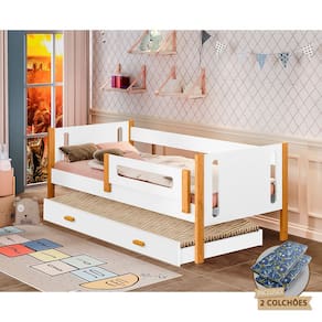 Tipo: Cama Solteiro Modelo: Mirela Cor: Branco/Amêndoa Garantia: 90 dias Produto Desmontado Cama Auxiliar possui rodízios (rodinhas) Acompanha manual e kit de montagem Com Grade de Proteção dos dois lados Acompanha 2 colchões Solteiro Infantil (Altura: 12cm x Largura: 88cm x Comprimento: 188cm)