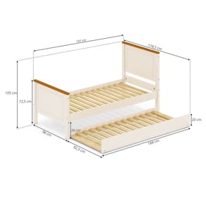 espaço acolhedor para hóspedes. A Bicama Ananda oferece design exclusivo, materiais de alta qualidade, montagem fácil, cama auxiliar. Com uma cadeia de abastecimento ética e responsável garantindo que cada etapa de produção da Linha Ananda está alinhada com padrões ambientais e sociais responsáveis. Produto Montado: Sim Acabamento dos Pés: Verniz Acompanha Cama Auxiliar: Sim Acompanha Colchão: Não Altura do Estrado até o Chão: 26 cm Altura dos Pés: 26 cm Ambiente Principal: Quarto Cama Auxiliar Acompanha Colchão: Não Cama Auxiliar com Rodízio: Sim Cama Auxiliar Suporta Até (kg): 100 kg codigo_ean: 7900288064806 Complexidade da Montagem: Média: pode ser montado por mais de uma pessoa e/ou necessite de maior conhecimento para montagem Cor: Off White/Mel Cor do Produto: Off White/Mel Escala de Brilho: Semi-Brilho Extensível: Sim Informações Complementares: Suporta 100kg em cada cama. Altura máx. de colchão para cama auxiliar 15cm. Itens Inclusos: 1 Cama + 1 Cama Auxiliar + Kit Ferragens + Manual de Montagem Largura Máxima: 178,5 cm Largura Mínima: 96 cm Linha ou Coleção: Ananda Manual de Montagem e Instalação: https://product-hub-prd.madeiramadeira.com.br/977587/documents/10f76edb-dedf-43a2-9e8a-019abaa2ffab2678888543917392771039842.pdf Marca: Casatema Material do Estrado: Pinus Material dos Pés: Madeira Maciça Material Principal: Madeira Maciça Necessita Montagem: Sim Origem do Produto: Nacional Permite a Utilização de Cama Auxiliar: Sim Peso: 47,38 kg Possui Baú: Não Possui Gavetas: Não Possui Grade: Não Possui Pés: 04 Possui Portas: Não Possui Prateleiras: Não Possui Rodízio: Sim Recomendações de Uso, Manutenção e Limpeza: Pano levemente umedecido, não usar produtos químicos ou abrasivos Rodízio com Trava: Não Sapatas Niveladoras: Não Sistema de Montagem: Parafusos, cavilha, haste, suporte, feltro adesivo Tamanho da Cama: Solteiro Tamanho do Colchão Indicado (L x C): 88X188 Tamanho do Colchão Indicado Cama Auxiliar: 78X188 Tipo de Cama: Bicama Tipo de Colchão: Solteiro Tipo de Estrado: Fixo Tipo de Madeira Maciça: Pinus Tipo de Madeira Maciça dos Pés: Pinus