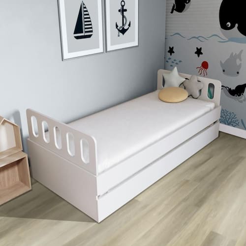 Material Principal: MDF | Cor Predominante: Branco | Necessita Montagem: Sim | Acompanha Colchão: Não | Tipo de Cama: Bicama | Altura: 70 | Largura: 93 | Comprimento: 195,5 | Peso: 62 | Peso máximo suportado: 120 | Cor Via: Branco | Peso com Embalagem: 62,6 | Comprimento com Embalagem: 197 | Largura com Embalagem: 40 | Altura com Embalagem: 80 | Tamanho da Cama: Solteiro | Descrição do Tamanho: Solteiro | Quantidade volumes: 03
