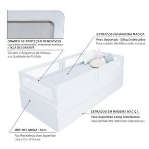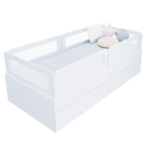 Bicama Solteiro Mdf Branco Com 04 Grades E Cabeceira Telinha Anatômica Mobilistore