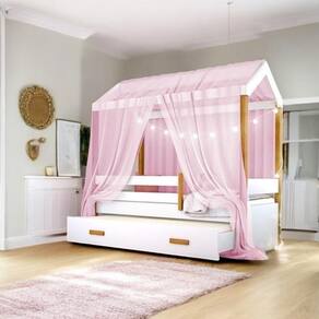 Inclui: Cama Montessoriana, Cama Auxiliar, Voal, Cordão de Luz LED com 10 bolinhas (não acompanha pilhas), e kit completo para montagem com manual de instruções.
