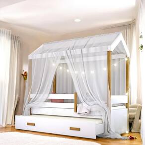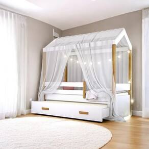 Inclui: Cama Montessoriana, Cama Auxiliar, Voal, Cordão de Luz LED com 10 bolinhas (não acompanha pilhas), e kit completo para montagem com manual de instruções.