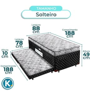 Modelo: Universal Marca: Nature Tamanho: Solteirão Tecido: Milão Largura: 96cm Comprimento: 203cm Altura: 25cm Altura dos Pés: 13cm Material dos Pés: Madeira Suporte de Peso: 150Kg Peso: 20Kg Garantia: 3 Meses