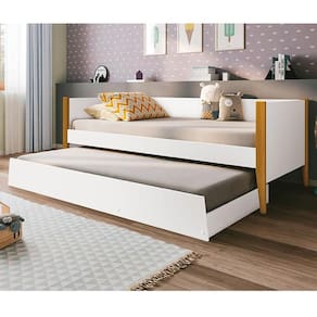 Bicama Solteiro Noah Branco Acetinado com Pés Amadeirado - Reller