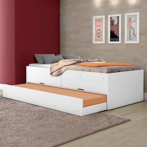 Colchão indicado de 88 x 188 cm , com altura máxima de 14 cm para cama auxiliar.