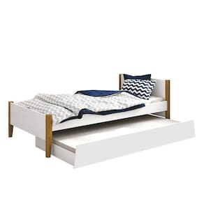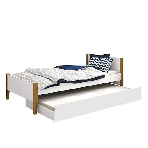 Bicama Solteiro Simba Branco Fosco com Pés Amadeirado - Reller Móveis