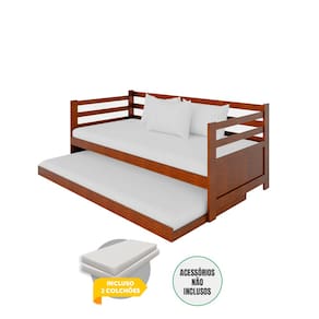 Bicama Vintage Solteiro Enjoy Madeira + 2 Colchões - Castanho - Marrom