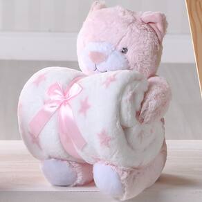 Bichinho de Pelúcia Premium com Manta New Bebê 100x75cm Rosa Claro -