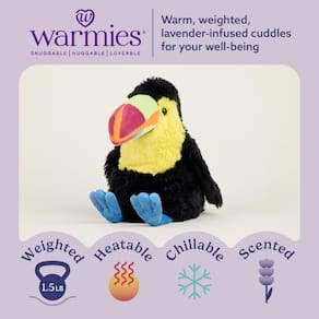— Bicho de pelúcia Warmies para micro-ondas: Toucan é um brinquedo de pelúcia pesado confortável, abraçável e adorável para todas as idades que pode ser facilmente aquecido até fornecer horas de calor relaxante ou frio no freezer para um toque refrescante e fresco. Perfeito para conforto e aconchego. 13 polegadas de altura, 1,5 libras.