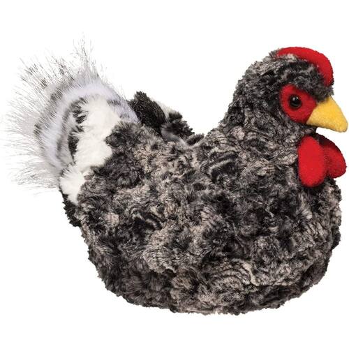 Galinha pimenta - A pimenta é nossa galinha negra distinta. Os materiais de pelúcia cinza sal e pimenta com uma textura de penas a deixam fofa e fofa, enquanto um corpo abraçável garante que esta adorável mãe galinha seja macia e esponjosa. - Este pássaro de pelúcia detalhado apresenta um pente vermelho e acácia, um bico amarelo brilhante e olhos pretos brilhantes que lhe dão uma aparência realista. - Projetado em Keene, New Hampshire, EUA pela Douglas Cuddle Toys, fabricantes de brinquedos de pelúcia excepcionalmente finos há mais de 60 anos. - Mede 21 cm de comprimento. - Seguro para todas as idades acima de 24 meses, lavável na superfície.