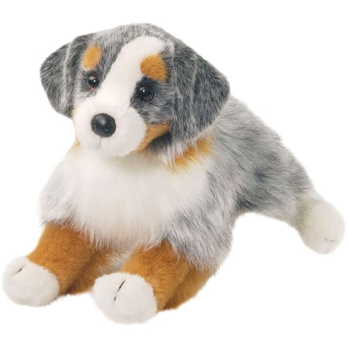 Sinclair AUS SHEPHERD - Sinclair é uma representação de pelúcia altamente detalhada e realista da raça do cão pastor australiano. Os materiais de pelúcia de alta qualidade e o enchimento de poliéster macio fazem da Sinclair um animal de pelúcia especialmente atraente que aguenta horas de jogo e infinitos abraços. - O design envolvente dá a este filhote de pelúcia um estilo de corpo articulado e fofinho para um alto valor de brincadeira. Olhos castanhos expressivos e nariz macio de couro sintético dão vida a este Aussie de pelúcia. - Projetado em Keene, New Hampshire, EUA pela Douglas Cuddle Toys, fabricantes de brinquedos de pelúcia finos de qualidade excepcional há mais de 60 anos - Mede 41 cm de comprimento. - Seguro para todas as idades acima de 24 meses, lavável na superfície.