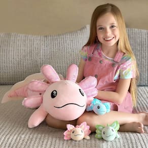 Desde a fundação, a MaoGoLan é uma empresa de brinquedos de pelúcia reconhecida mundialmente por produtos inovadores de qualidade. Com base em nossos designs gráficos, continuamos a desenvolver bons bichos de pelúcia e travesseiros de pelúcia para atrair a próxima geração de clientes. Cada um dos nossos brinquedos de pelúcia é feito de materiais de pelúcia ultramacios e premium. Características: o adorável brinquedo de pelúcia axolote é feito com algodão super fofo e ultramacio, cada travesseiro de pelúcia axolote é projetado para abraçar e aconchegar, proporcionando uma sensação segura e criando um ambiente confortável. Os lindos bichos de pelúcia axolote serão bons companheiros para brincar. Tamanho: 81 cm/2,6 pés/80 cm/0,8 m/G O pacote inclui: 1 travesseiro de pelúcia axolote gigante + 3 axolotes de bebê - Conjunto de brinquedos axolotl macio: 4 brinquedos axolotl de pelúcia em um, você receberá um grande bicho de pelúcia de axolote grávida e 3 fofos de pelúcia axolotl, brinquedo axolote rosa, pelúcia axolote azul abafado e pelúcia axolote verde. O axolote da mamãe de pelúcia vem com uma surpresa na barriga, abra o zíper, você pode encontrar 3 pequenos axolotes - Travesseiro de pelúcia Axolotl abraçável: os axolotes de pelúcia de 81 cm têm expressão fofa, olhos bordados. Os brinquedos de pelúcia de animais de 4 axolotes são populares entre as idades de 3, 4, 5, 6, 7, 8 e 9 anos na maioria das ocasiões. O interesse de meninos e meninas se desenvolveu por sua própria brincadeira divertida - Presente de decoração: o travesseiro de pelúcia axolote rosa é uma decoração ideal para quarto, festa e presente atraente para namorada ou mulheres, no Halloween, Dia dos Namorados, aniversário, chá de bebê, dia das crianças, Natal e Páscoa. O brinquedo de pelúcia axolote de pelúcia será o seu animal favorito - Amigos próximos: O grande boneco de pelúcia do axolote é um bicho de pelúcia anfíbio. Os brinquedos axolotl macios para crianças são adequados para compartilhar e brincar juntos, incentivam a brincadeira de fingir - Dicas: o axolote de pelúcia da mãe e 3 pequenos axolotes de pelúcia ficarão um pouco vincos porque a pelúcia de animal axolote é comprimida a vácuo. Se colocar brinquedos de pelúcia axolotl grandes em uma secadora em alta temperatura por um tempo, você receberá brinquedos de pelúcia de axolote fofos. Recomendamos que você use uma escova para limpar suavemente a superfície de animais de pelúcia axolotl macios a granel