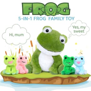 Leve para casa a diversão da natureza com este grande conjunto de brinquedos de pelúcia para sapos. Este bicho de pelúcia de sapo verde de 18 polegadas vem com 4 peluches pequenos, perfeitos para se aconchegar ou exibir no quarto do seu filho. Feitos de materiais de alta qualidade, os brinquedos de pelúcia supermacios para sapos são duráveis e seguros para crianças de todas as idades. Com seu design fofo, material de pelúcia macio e vários usos, é certamente um ótimo presente para amantes de sapos, meninos e meninas. Seja para um aniversário, Natal ou apenas porque, este brinquedo de pelúcia kawaii com certeza será um sucesso! E nosso sapo de pelúcia para mamãe com sapo bebê passou pelo CPC e CE, então sinta-se à vontade para usar nossos brinquedos de pelúcia com sapo de pelúcia. Sobre MoriSmos: Os brinquedos de pelúcia não são apenas brinquedos para crianças, são ferramentas educacionais que ajudam as crianças a aprender sobre o mundo. Escolha bichos de pelúcia de alta qualidade da MoriSmos para manter a alegria de seus filhos e familiares o tempo todo. A marca MoriSmos foi criada em 2016 para criar brinquedos de pelúcia populares e inovadores para todas as idades. Sempre nos comprometemos em fornecer os melhores produtos e serviços para todas as crianças e todas as pessoas que amam bichos de pelúcia. Se você tiver algum problema após receber o produto, não hesite em entrar em contato conosco, garantimos que responderemos em 24 horas e forneceremos uma solução satisfatória! Dicas quentes: usamos uma embalagem selada a vácuo, não se preocupe. Uma vez aberto, o brinquedo de pelúcia macio toma sua forma. Demora cerca de 10 minutos. E dar tapinhas fará com que os sapos de pelúcia restaurem a forma rapidamente. Nós sempre estaremos aqui para você. -?Bicho de pelúcia exclusivo de sapo com bebês?O conjunto de brinquedos de pelúcia para sapos não é apenas 1 brinquedo, mas 5 brinquedos em 1! Abra uma bolsa grande com zíper traseiro para mamãe e sapo. Encontre 4 peluches pequenos para bebês com expressões diferentes. Cada bebê é único! As crianças gostam de imitar de forma divertida a expressão de sapinhos fofos. Veja o rosto de seus filhos se iluminar com esses brinquedos de pelúcia para sapos! -?Alta qualidade e segurança?A segurança vem em primeiro lugar. Feitos de tecido macio de pelúcia, algodão PP de alta qualidade, zíper liso e firmes para lavar os olhos. Estes brinquedos de pelúcia de pelúcia de pelúcia foram aprovados pelo CERTIFICADO DE PRODUTO INFANTIL/CE. Brinquedo de pelúcia durável e seguro para crianças de todas as idades. Você pode confiar que o conjunto de brinquedos de pelúcia de sapo é seu companheiro favorito. Seja para brincar, dormir ou decorar, este brinquedo é indispensável. -?Brinquedos portáteis e parceiros que podem ser abraçados?As crianças gostam de abraçar seus brinquedos favoritos. O brinquedo de pelúcia de sapo de 18 polegadas é fácil de transportar para mãos pequenas. Cuidar e armazenar bebês sapos multicoloridos promove habilidades motoras finas e reconhecimento de cores, o que beneficia o QI e o QE de uma criança. Além disso, um sapo de pelúcia grande e macio também é um travesseiro macio e uma almofada de pelúcia para crianças, bebês e adultos enquanto dormem ou lêem -?Presente surpresa e decorações divertidas?Sapo verde grande e vívido com olhos grandes, lindos bebês sapos pequenos com expressões divertidas, quietos, mas divertidos, são fáceis de dar vida à alegria de um conto de fadas. Tanto crianças quanto adultos estão ansiosos para receber este presente nos aniversários, no Natal. Além disso, também são decorações ideais para quartos, festas e aniversários, chá de bebê... - ?? Sobre MoriSmos & Warm Tips: Obrigado por escolher os bichinhos de pelúcia de sapo de pelúcia MoriSmos. Temos o compromisso de fornecer os melhores produtos e serviços para todos. Se você tiver alguma dúvida. , faremos o possível para atender às suas expectativas. Dicas: Talvez os brinquedos de pelúcia para sapos não fiquem fofos ao serem recebidos, basta acariciar e amassar suavemente, deixá-los descansar por alguns dias ou colocar na secadora em fogo alto por um tempo, eles ficarão mais cheios e bonitos