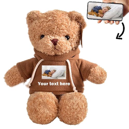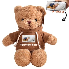 Ursinho de pelúcia personalizado com texto + foto, ursinho de pelúcia dos namorados como presentes personalizados para ela no dia dos namorados, aniversário, Natal (20 cm - texto + foto) - ?Personalizável? A qualidade editável do nosso ursinho de pelúcia permite que você adicione qualquer coisa, um nome, um logotipo da escola ou sua bênção. Com um visual atraente da vida real, é um excelente presente personalizado para ele/ela/amigos/família/graduados, etc. Clique em "Personalizar agora" e carregue suas informações personalizadas. Deixe este urso dos namorados falar por você! - ?Material de alta qualidade? Feito de pelo de alta qualidade, nosso urso de pelúcia é macio e confortável, fácil de lavar devido à sua fabricação à prova d'água, você certamente vai se apaixonar por ela! As formas são projetadas por designers de renome mundial e produzidas por trabalhadores qualificados para garantir que seu texto personalizado seja impresso com precisão. Com olhos brilhantes e uma expressão confiante, o ursinho de pelúcia simboliza coragem, vigor e autoconfiança. - ?Reconfortante e significativo? Totalmente costurado à mão e cuidadosamente trabalhado, como uma obra de arte, nosso ursinho de pelúcia é adequado para mostrar seus parabéns e encorajamento de uma maneira especial e isso é inqiue para o seu relacionamento. Certamente os fará rir! Será um parabéns muito emocionante e inesquecível, ela/ele ficará comovido e manterá este presente personalizado com eles por muitos anos. - ?Presentes impressionantes? Nosso ursinho de pelúcia dos namorados atrai todas as idades, perfeito para presentear em muitas ocasiões, como presentes de aniversário/dia dos namorados/Natal/formatura para ela e ele/faculdade/formatura universitária! Este presente personalizado é uma bênção sincera que certamente impressionará o destinatário por um longo tempo e o apreciará por muitos anos como uma lembrança bonita e preciosa para você e ele/ela. - ?Satisfação perfeita garantida? Apenas expresse parabéns e encorajamento aos seus amigos/familiares adicionando foto ou texto engraçado no presente personalizado do ursinho de pelúcia. É nossa principal prioridade fornecer uma experiência satisfatória e de alta qualidade para nossos clientes. Se você tiver alguma dúvida, sinta-se à vontade para entrar em contato conosco a qualquer momento, sempre tomaremos medidas imediatamente para garantir a satisfação perfeita do cliente.
