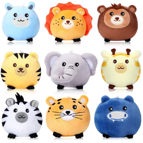 Características: Existem 9 pacotes de animais sem duplicados, atendendo às suas necessidades de jogar jogos engraçados com amigos e familiares. Além disso, o conjunto de brinquedos de pelúcia também é uma adição atraente para sua bolsa, mochila escolar e chaveiro. Você pode usar estes brinquedos adoráveis de animais para enfeitar a festa de aniversário, festa do chá de bebê e festa temática de animais. O filho e a filha vão gostar de brincar com esses mini bichos de pelúcia, e os pais também podem se juntar a eles. Especificações: Material: pelúcia, algodão PP Cor: como mostrado na imagem. Tamanho: cerca de 3,15 polegadas/8 cm A embalagem inclui: 9 mini brinquedos de animais de pelúcia. Observações: Medição manual, considere pequenos erros no tamanho. A cor pode existir uma pequena diferença devido a diferentes exibições de tela. - Conjunto de mini brinquedos de pelúcia: você receberá 9 brinquedos de pelúcia de animais pequenos, incluindo tigre, zebra, girafa, rinoceronte, leão, elefante, macaco, leopardo e hipopótamo, cada mini animal de pelúcia medindo cerca de 3,15 polegadas/8 cm; Tamanho pequeno para facilitar o transporte para qualquer lugar - Forma redonda fofa: este conjunto de brinquedos de pelúcia consiste em mini brinquedos de pelúcia com formato redondo e expressão adorável; esses pequenos brinquedos atrairão a preferência da maioria das meninas e meninos, sendo alguns brinquedos de jogo engraçados - Macio e confortável ao toque: a superfície dos pequenos bichos de pelúcia fofos é de pelúcia e o algodão PP é preenchido por dentro, que é seguro e amigo da pele para as pessoas; o material macio é confortável ao toque, e você vai gostar desses pequenos brinquedos de animais - Corrente pequena destacável: equipada com uma pequena corrente destacável, os animais em miniatura podem ser pendurados em suas chaves, mochilas, bolsa, carteira e muito mais; você pode facilmente destacar a corrente e conectar aos itens que deseja decorar - Presente engraçado: animais em miniatura são adequados para pessoas de todas as idades; os mini animais de pelúcia podem ser aplicados como decorações de chaveiro de pelúcia e pingentes de mochila escolar; no aniversário, chá de bebê, dia dos namorados, Páscoa, formatura e outros festivais, pequenos animais de pelúcia são presentes doces e adoráveis