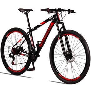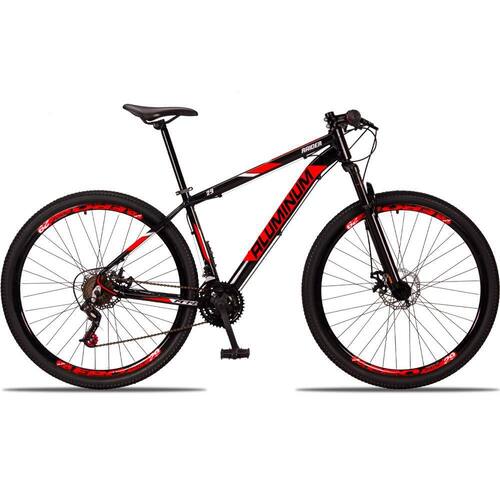 Bicicleta 29 Aluminum Raider 21 Marchas Freio a Disco com Suspensão - 19-Preto+Vermelho