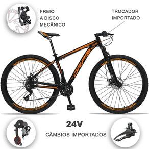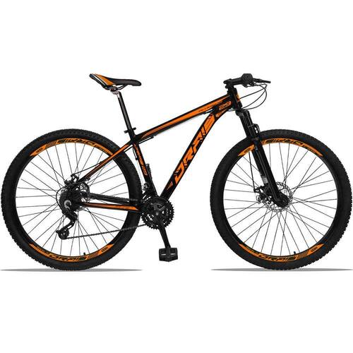 Bicicleta 29 Drais 24 Marchas Freio a Disco MTB Aluminio Suspensão Dianteira - Cor: Preto+Laranja | Tamanho: 21