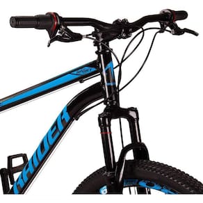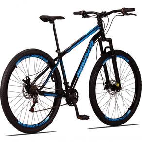 Aro: 29 | Marchas: 21 | Modalidade: Passeio | Suspensão: Dianteira | Material do Quadro: Quadro em Aço | Modelo e Composição do Garfo: Suspensão Preto 29 | Marca e Modelo do Sistema de Câmbio: Câmbio Dianteiro imp. 3v imp / Câmbio Traseiro imp. 7v imp / Trocador de Marchas Grip Shift - 21v - imp. | Marca e Composição do Pedivela: Pedivela 3 Coroas em Aço | Modelo e Composição do Freio: Freio a Disco 160mm Preto - MECÂNICO | Material da Roda: Aros Aero 36 Furos Folha Dupla Alumínio | Pneus: Pneu 29 (Imp.) | Marca e Composição dos Cubos: Cubos Rosca 36f em aço | Modelo e Composição do Guidão: Guidão Reto em Alumínio | Marca e Composição do Selim: Selim Sport | Material do Canote: Aço 22.2 | Importante: Bicicleta para passeios e trilhas leves, não indicada para manobras radicais e trilhas pesadas / Consulte o tamanho de quadro adequado à sua altura antes de realizar a compra. | Montagem do Equipamento: A montagem é de responsabilidade do cliente, sugerimos que seja efetuada por uma oficina especializada. | Garantia do Fabricante: 90 dias. A garantia será validada para as bicicletas montadas e revisadas por uma oficina especializada e é referente apenas ao primeiro proprietário | Informação Relevante: Pode haver alguma diferença de tonalidade entre a imagem e o produto real, por conta do tratamento de imagens e a calibração de cores do monitor Cor: Preto+Azul