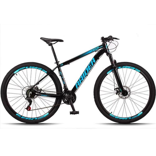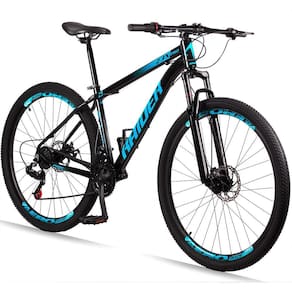 Bicicleta 29 Raider Z3X Pro 21V Freio a Disco e Suspensão Quadro Alumínio MTB - 21-Preto+Azul