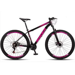 Bicicleta 29 Raider Z3X Pro 21V Freio a Disco e Suspensão Quadro Alumínio MTB - 19-Preto+Rosa