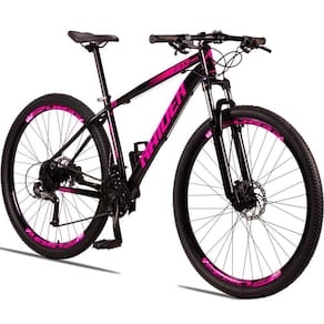 Bicicleta 29 Raider Z3X Pro 24V Câmbios Shimano Tourney Cubo K7 ?Freio Hidráulico Suspensão Trava - 17-Preto+Rosa